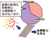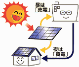 昼間発電した電気は家庭内で使い、余剰分は電力会社に「売電」